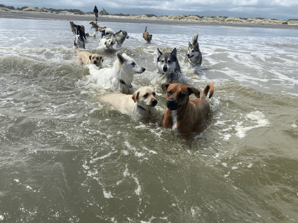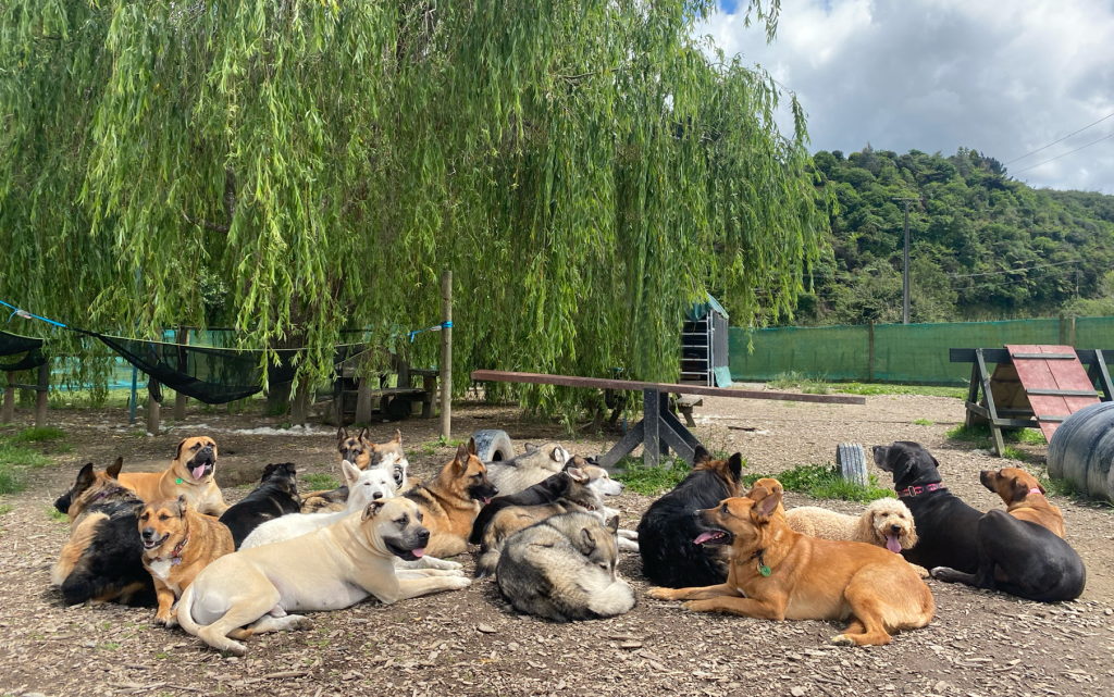 I started out doing pack walks with Doggo around the greater Wellington region parks, forests and beaches for 5 years. We made many connections within the industry in this time and shared adventures with daycares and other walking packs. Together, we enjoyed many memorable missions with lively and harmonious packs, most of all with Wolf Pack NZ. During this, we envisioned creating a space of our own- combining relaxation, structure and community. Over the next 5 years, we created our dog play land, to bring the adventure to our own daycare.